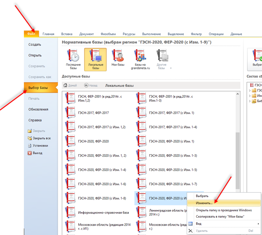 Например, к Базе ТСНБ "ГОСЭТАЛОН 2012 редакции 2014 года (Изм.1 от 01.02.2017)" можно добавить также Федеральную сметно-нормативную базу (ФЕР 2020 с Изм.1-9).