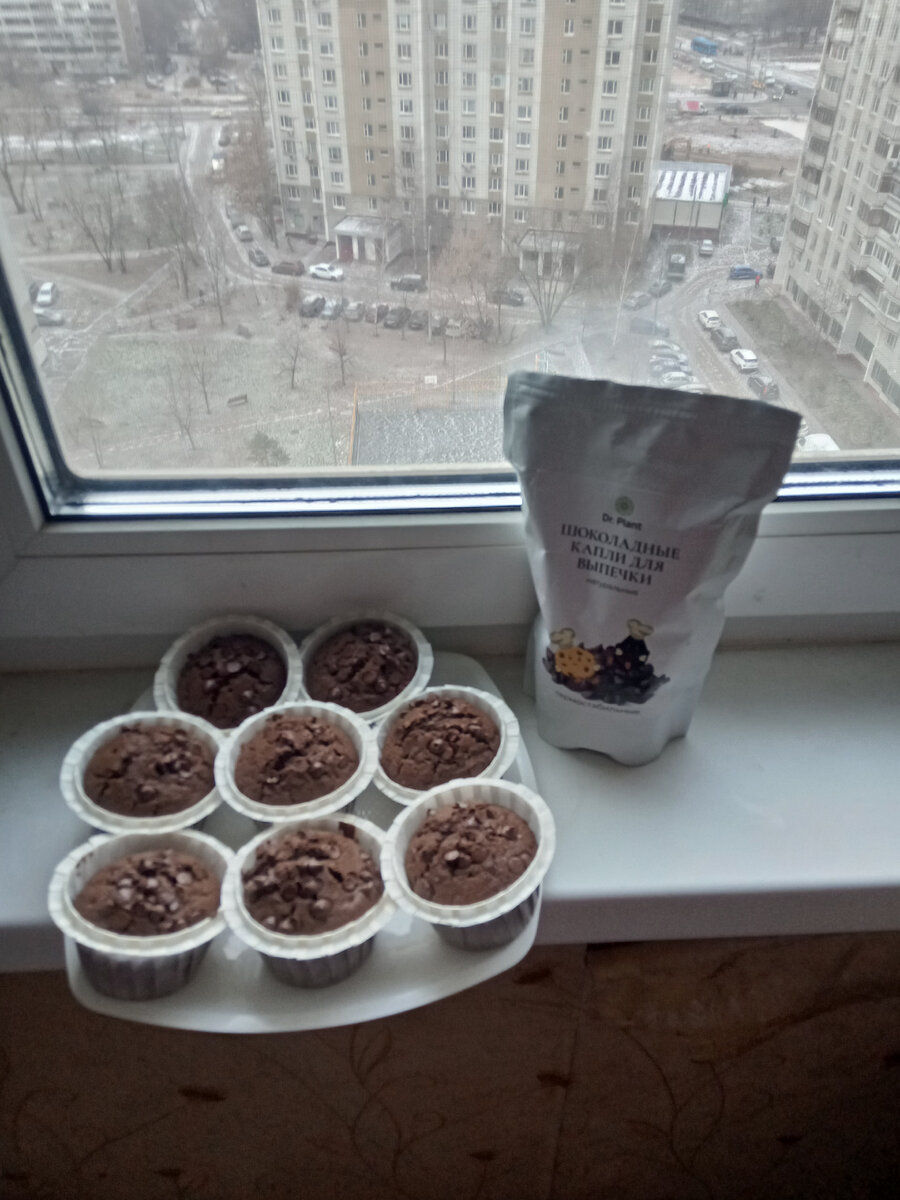 Здравствуйте, дорогие подписчики и все остальные. Испекла сегодня маффины по рецепту Кристины Шумской. Рецепт: мука- 125г, какао- 35г, разрыхлитель-5г,молоко-125г,яйцо -1шт,сахар коричневый-80г,масло растительное-30г,масло сливочноес35г,ореховая паста -15г(я делала без пасты) шоколад -30г( я добавляла темный),нетающие шоколадные капли-30г выпекать при 175г 25-30минут. Я выпекала при 170г, 25минут.масло сливочное азбить с сахаром, добавить яйцо, молоко, масло раст. Сухие ингредиенты, шоколад. Разложить по капсулам, посыпать каплями для выпечки.