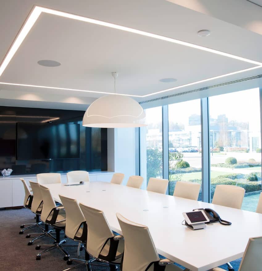 Световой потолок со световыми линиями или люстра? Какое освещение будет более эффективным?