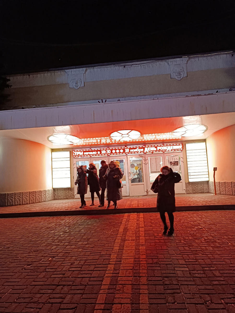 Вчера были с мамой в театре. Московский областной театр драмы и комедии - это театр в Ногинске, городе, который практически слился с нашей Электросталью, 15 мин мы ехали на автобусе и минут 10 шли от автостанции. И вот - на месте. Театру в этом году аж 90 лет и вот решили мы, что надо бы сходить, посетить, так сказать. Народу полно! Конечно же, в основном, все те же тетеньки от 55-ти и больше. Нарядные, причесанные, с подружками или поодиночке, но очень похожие. Такое мини-сообщество пожилых упитанных тетушек определенного возраста. Пришли в театр, сдали одежду. Куда дальше? Конечно в буфет. Он конечно оооочень странный. И сомнения были. Там всего одна девушка-продавец. Все одними руками: и деньги, и булки, и сок налить, и бутылку откупорить. Никакой конечно специальной одежды - просто как пришла с улицы, так и раздает еду. Подносы с булками как специально поставлены вдоль края стола у которого стоит очередь, видимо чтобы эти милые дамы стрясли со своих шалей, шарфиков и пышных рукав