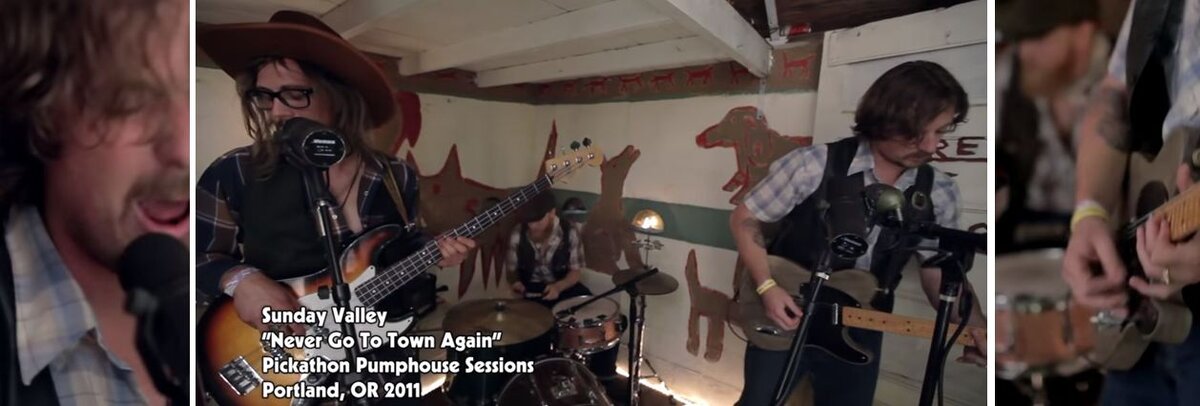 Альбом вышел только на компакт-диске, и сразу коллекционная редкость. CD за 400 баксов - как вам такая цена? *** Всего один номер группы Sunday Valley. Песня Never Go To Town Again. Бас, вокал - Джеральд Эванс. Барабаны - Эдгар Пардом. Гитара и основной вокал - Стерджилл Симпсон. Живая запись 2011 года. Через пару лет начнется грэмминосная карьера Симпсона (Sturgill Simpson). Парень запишет два крутых сольника: High Top Mountain (2013) и Metamodern Sounds In Country Music (2014). Следующий шаг - превращение в скучную кантри-рок звезду. Дальше только хуже: Голливуд. В 2011 году его первая (?) команда Sunday Valley выпустила единственный альбом "Навстречу ветру и дальше, к небесам" (To The Wind And On To Heaven). Только компакт-диск, и сразу коллекционная редкость! CD за 400 баксов - как вам ценник? Да еще попробуй найти не подделку, а оригинал, который за последние лет десять на вторичном рынке не встречался. Зато можно сказать: так должна звучать музыка в стиле рок-н-кантри-ролл. На де
