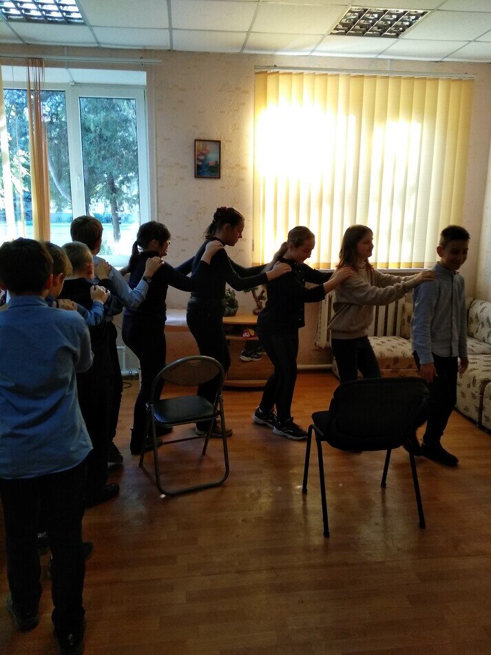 Важное место в работе психолога, ведущего группы занимают игры и упражнения на сплочение и командообразование. Так, я проводила подобные тренинги с учащимися разных возрастов. Такое занятие необходимо в работе со вновь сформированными классами, чтобы помочь новым ученикам адаптироваться в коллективе. Можно включать подобные упражнения и в работу со взрослыми. Упражнение «Лабиринт» В качестве игровой метафоры сообщаем участникам, что им предстоит пройти по сложному подземному лабиринту в полной темноте. Путь полон различных опасностей, поэтому нужно опираться только на поддержку товарищей. Фонарик (открытые глаза) будет только у впереди стоящего. Группа выстраивается в шеренгу, в затылок друг к другу. Все закрывают глаза, кроме первого в шеренге. Тренер расставляет в хаотичном порядке несколько стульев, и группа начинает движение. Ведущий может жестами показывать первому участнику направление движения, чтобы лабиринт получился посложнее. Через некоторое время игра останавливается. Первы