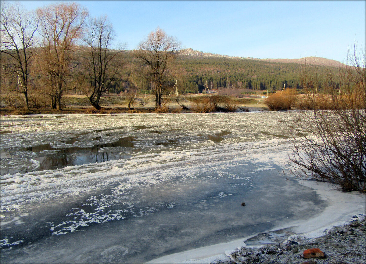 Да, в заголовке не зря стоят улыбательные скобочки, ведь все мы знаем, что время ледохода - весна. Но сегодня довелось наблюдать весьма похожее явление у нас, на реке Белой. В народе для этого явления есть своё конкретное название, говорят так: "сало плывёт". Это когда река (речь именно о текучей воде) при первых морозах пытается схватиться льдом, но течение пересиливает, лёд пока ещё не держится. И по воде плывут ледяные корочки, часто покрытые инеем или снежком. Будто застывший жир на поверхности супа - вот такое неромантичное сравнение. Но его придумал народ... Сегодня утром термометр показал -16°, как и было обещано синоптиками. Это первый столь серьёзный морозец в этом ноябре. Потом, зимой, такая погода будет считаться тёплой, но для ноября цифры приличные. А днём потеплело, захотелось прогуляться. Пошли на устье. И не пожалели! Давайте смотреть (выбрала для этой публикации ровно десять кадров). У берега закрайки схватились ледком, а дальше - настоящий ледоход! Только льдинки тонк