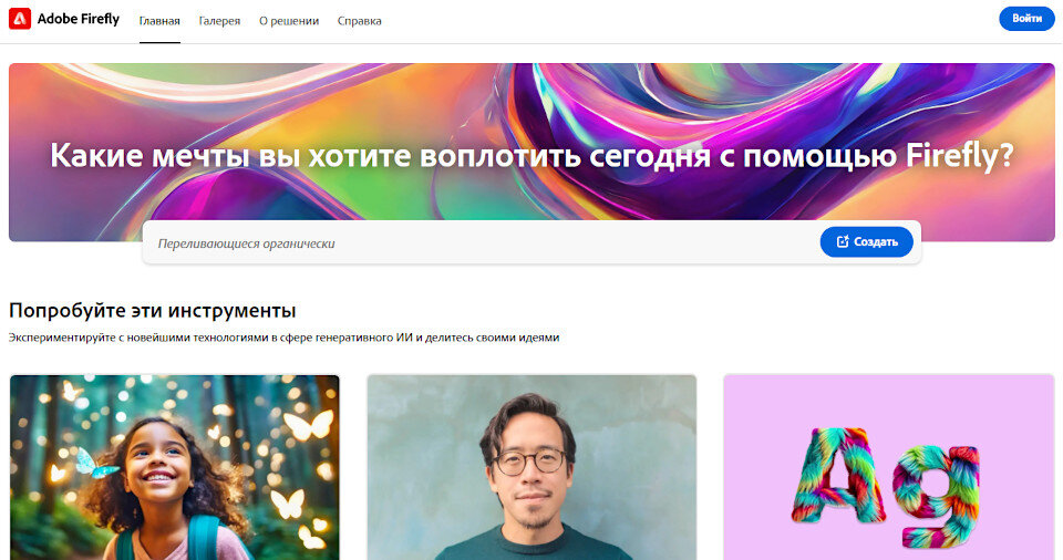Adobe Firefly - это уникальный инструмент для творчества, разработан компанией Adobe. Он позволяет вам создавать изображения, текстовые эффекты и цветовые палитры из простых текстовых запросов на более чем 100 языках.