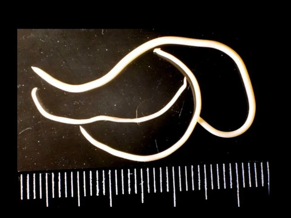 ТОКСОКАРА ОДНИ ИЗ НАИБОЛЕЕ РАСПРОСТРАНЁННЫХ, ЛИЧИНКИ СЕЛЯТСЯ В ГЛАЗАХ, ВНУТРЕННИХ ОРГАНАХ ЧЕЛОВЕКА И КИШЕЧНИКЕ. ПОДХВАТИТЬ ЭТОГО ПАРАЗИТА МОЖНО СЪЕВ ГРЯЗНУЮ ЕДУ И ВЫПИВ ГРЯЗНОЙ ВОДЫ, ТАК ЖЕ НОСИТЕЛЯМИ МОГУТ СТАТЬ СОБАКИ И КОШКИ. ПРОЯВЛЕНИЯ ЗАРАЖЕНИЯ: • ОТЁК КВИНКЕ • ВЫСЫПАНИЯ НА КОЖЕ • ПРИСТУПЫ УДУШЬЯ • УВЕЛЕЧЕНИЕ ЛИМФОУЗЛОВ АСКАРИДА ОДИН ИЗ НАИБОЛЕЕ ИЗВЕСТНЫХ ЧЕЛОВЕЧЕСКИХ ПАРАЗИТОВ ОБИТАЮЩИХ В ТОНКОМ КИШЕЧНИКЕ. ЯЙЦА АСКАРИД СОДЕРЖАТСЯ В ЧЕЛОВЕЧЕСКИХ ИСПРАЖНЕНИЯХ. ПОПАДАЯ В ПОЧВУ ОНИ СОЗРЕВАЮТ ДО ЛИЧИНОК, КУДА ПОТОМ С ЗЕМЛЁЙ ПОПАДАЮТ В ПИЩУ ИЛИ НА РУКИ, НЕМЫТЫЕ РУКИ, ФРУКТЫ, ОВОЩИ И ЯГОДЫ ТАК ЖЕ СПОСОБ ПОДХВАТИТЬ ИХ. ПРОЯВЛЕНИЯ ЗАРАЖЕНИЯ: • ГИПЕРТЕРМИЯ, ЗУД, КОЖНАЯ СЫПЬ • РВОТА, ТОШНОТА, НАРУШЕНИЕ СНА, НАРУШЕНИЕ СТУЛА, ЧРЕЗМЕРНАЯ УТОЛЯЕМОСТЬ НЕКАТОР, АНКИЛОСТОМА ДВА КРУГЛЫХ ЧЕРВЯ КОТОРЫЕ ПРОНИКАЮТ В ОРГАНИЗМ ЧЕРЕЗ ГРЯЗНЫЕ ОВОЩИ, ФРУКТЫ И ВОДУ. ТАК ЖЕ ОНИ НАХОДЯТСЯ В ЗЕМЛЕ. ПРОЯВЛЕНИЯ ЗАРАЖЕНИЯ: • ВОЛДЫРИ • КАШЕЛЬ, АСТМА • ОТСУТСТВИЕ АППЕТИТА • ДИАРЕЯ • НИЗКИЙ ГЕМОГЛОБИН ВИД