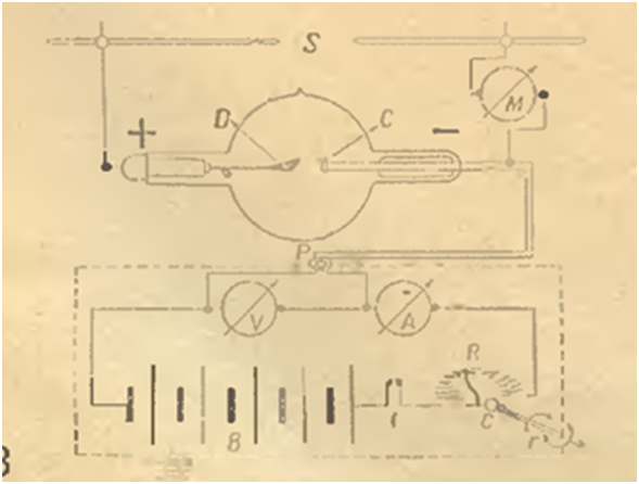 Рентгеновская трубка Кулиджа была изобретена 1913 году Уильямом Кулиджемна основе трубки Крука, но с подогреваемым катодом, увеличивающим эмиссию электронов и мощность установки. На схеме красным прямоугольником выделен трансформатор Румкорфа. Румкорф в 1850 организовал серийное производство подобных трансформаторов с прерывателем.