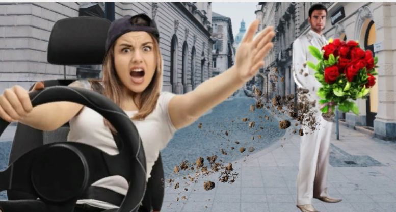 Машина машина набрала скорость. Лужу Маша заметила поздно. А вот молодого человека в белоснежном костюме с огромным букетом алых роз - издали. Как такого красивого, статного, да ещё галантного (не себе же цветы купил!) и не заметить?! Когда Маша заметила и лужу, тормозить было уже поздно. Пшшшшш, и белоснежный костюм молодого человека весь в грязи. Маша заорала: -Что стоишь? Загипнотизировали? - это она от досады. Ей было неловко, всё же чужой костюм испортила. И, похоже, у него, у этого мужчины, сегодня торжественный день, и он явно ждёт даму... И когда чувствуешь себя виноватой, иногда эмоции срабатывают неожиданно противоположным образом: начинаешь кричать а не извиняться, - вот как у Маши. Но молодой человек никак не реагировал, казалось, он даже не заметил, что его облили грязью. Маша затормозила, остановилась. Вернулась. Подошла. Он стоит, также смотрит в даль, как и за секунду до Машиного виртуозного проезда по луже. Может, правда, загипнотизировали? -Простите, пожалуйста, я
