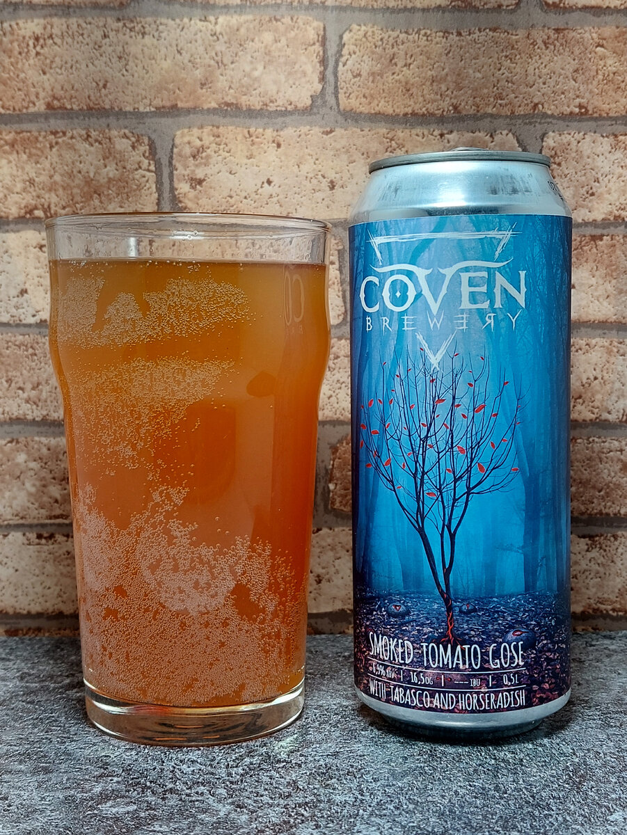 Это томатное гозе было куплено по одной причине. От обитателей Дзена был наслышан о Bloody Roots от COVEN. К сожалению такого на полках магазинов мне не встретилось. Как я понимаю сегодняшний напиток его "улучшенная" копчёная версия. В группе ВК пивовары пишут следующее: "Совсем недавно мы рассказывали о двух вариациях нашего известного томатного эля, пришло время вспомнить и о третьей. Базу напитка составляет классический для Bloody Roots дуэт соуса Табаско и хрена, но здесь вкус дополнен приятными копчеными нотами." Плотность: 16.5%. Состав: вода подготовленная, солод (пшеничный, ячменный копчёный), хмелепродукты, томатная паста, корень хрена, соль, соус красный перечный, оливки, экстракт кориандра, экстракт зиры, экстракт базилика, пивные дрожжи. Крохи пены исчезли за пару секунд. Аромат сильный и приятный рассольно-томатный с кориандром, зирой и базиликом. С прогревом к ароматике подключается небольшая дымность. Карбонизация ниже среднего. Плотность домашнего томатного сока. Вкус