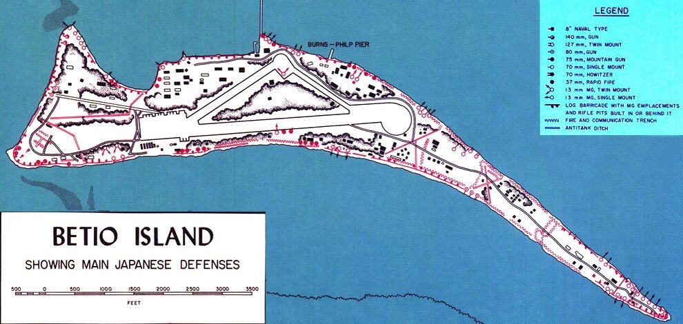 При этом на острове находилось всего 2619 японских военных и примерно 2200 безоружных строительных рабочих, возводивших укрепления. Огневую мощь оборонявшихся составляли 14 береговых орудий времен Первой мировой войны, 40 полевых и зенитных пушек, а также - 14