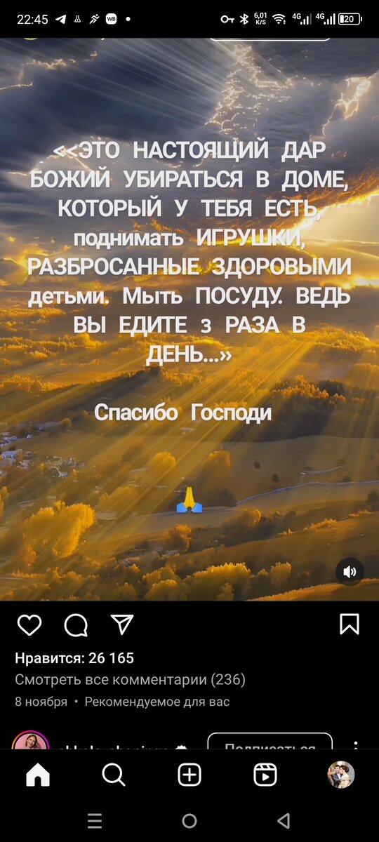 Сегодня поговорим на тему благодарности, почему это важно. Делюсь своими размышлениями. Приветствую всех на своем канале! На эту тему уже давно хотела написать статью. А тут недавно попался пост, я его даже себе заскринила и вчера случайно видео батюшки попалось на эту тему и я решила, что точно настала пора этой статьи. А вот и тот пост: И согласитесь, что многое мы воспринимаем как должное, само собой разумеющееся и даже не задумываемся, что не у всех это есть. Зачастую мы больше жалуемся на то, чего нет, что что-то не получается, не идет по нашему плану. Даже в церковь чаще все приходят просить. А почему бы просто не поблагодарить? За то, что просто все хорошо, что есть еда, вода, работа, одежда. В доме тепло. То, что есть мы воспринимаем как должное и со временем хотим все больше и больше. Аппетиты растут и постоянно не устраивает то, что уже есть. Тут, конечно, тоже нужно понимать, что не нужно впадать в крайности. И я не говорю, что надо сесть радоваться и ни к чему не