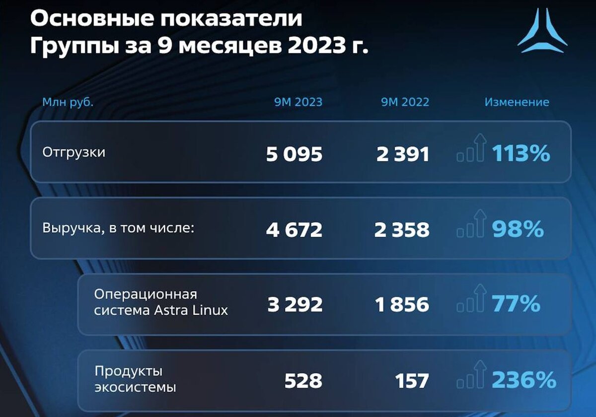 Группа Астра впервые после нашумевшего IPO представила отчётность по МСФО за 9 месяцев 2023 года, сопроводив анонс полезным конференц-коллом. Чем нас порадовал ведущий российский производитель инфраструктурного ПО в России? Давайте разбираться. Итак, отгрузки в отчетном периоде увеличились на 113% до 5,1 млрд руб., а выручка удвоилась до 4,7 млрд руб. Сильные результаты достигнуты за счет роста клиентской базы и высокого спроса на отечественное ПО со стороны бизнеса. Компания продолжает демонстрировать кратный рост выручки, который обусловлен не только уходом зарубежных вендоров, но и расширением экосистемы продуктов. Чистая прибыль сохранилась на прошлогоднем уровне в 1,3 млрд руб., что вызвано двумя факторами. Во-первых, значительный объем продаж компании приходится на 4 квартал, так что по итогам года мы можем увидеть неплохой рост прибыли. Во-вторых, компания наращивает инвестиции в персонал. На российском IT-рынке наблюдается дефицит высококвалифицированных специалистов, поэтому к