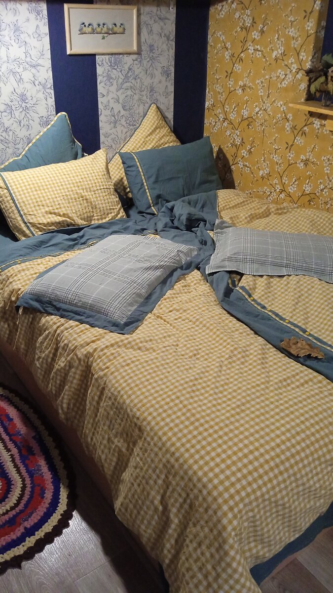 Захотелось постельное чисто из пестротканой клетки, с минимумом другой ткани-компаньона, очень уж клетка необычная и по рисунку и по ощущениям.
