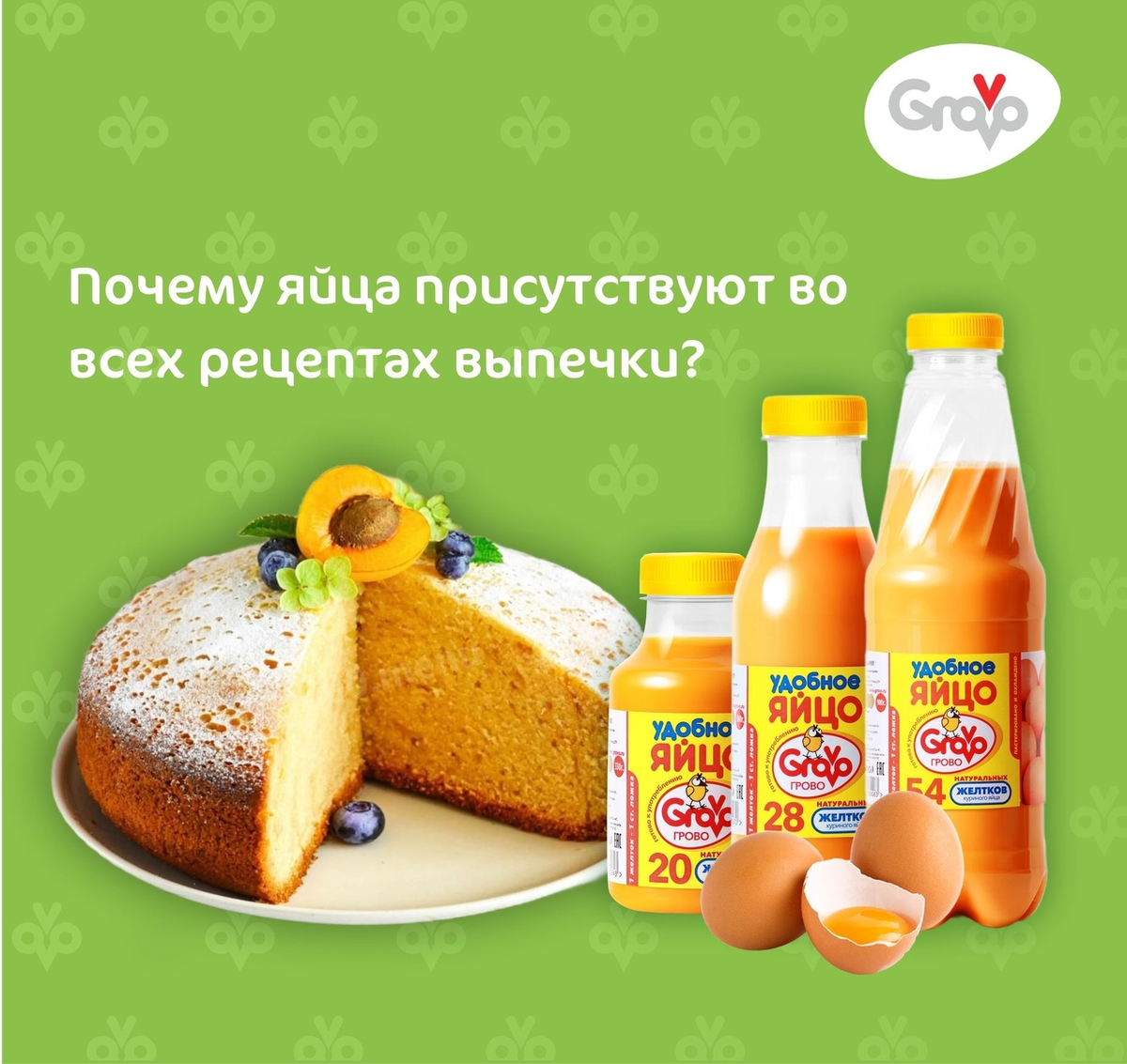 А при термической обработке яичный желток придает тесту приятный золотистый оттенок и делает вкус выпечки еще насыщеннее!
