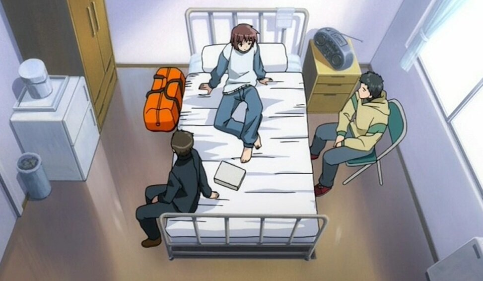 Есть такие аниме, которые буквально обязаны были стать хорошими. В них есть всё, что любят зрители, драма, уютная рисовка, и на первый взгляд приятные персонажи, но что-то идет не так, и произведение забывается в пучинах времени, и вспоминают его неоднозначно. И честно скажу, я сам не могу до конца определить, полюбил ли я эту историю, или хочу её забыть, но обо всем этом мы ещё успеем поговорить. А пока, позвольте вам просто представить драматичное, но атмосферное произведение «Глядя на полумесяц» (Hanbun no Tsuki ga Noboru Sora). И давайте, я вам вкратце распишу, что вас здесь ожидает в сюжетной завязке, а потом мы уже более подробно обсудим, чем это произведение интересно, что мне в нем понравилось, а из-за чего я хотел заплевать монитор. Идея сюжета Есть много способов спустить время в унитаз, и один из самых неприятных это крепко заболеть. Вот и наш главный герой Юити Эдзаки умудрился поймать себе гепатит, и хотя его жизни ничего не угрожало, но он на 2 долгих месяца оказался в бо