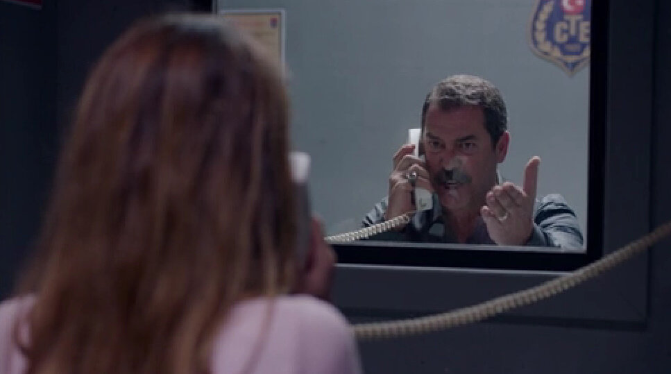 Джемре бросив трубку, выбегает из комнаты для свиданий. Агах в гневе швыряет трубку.