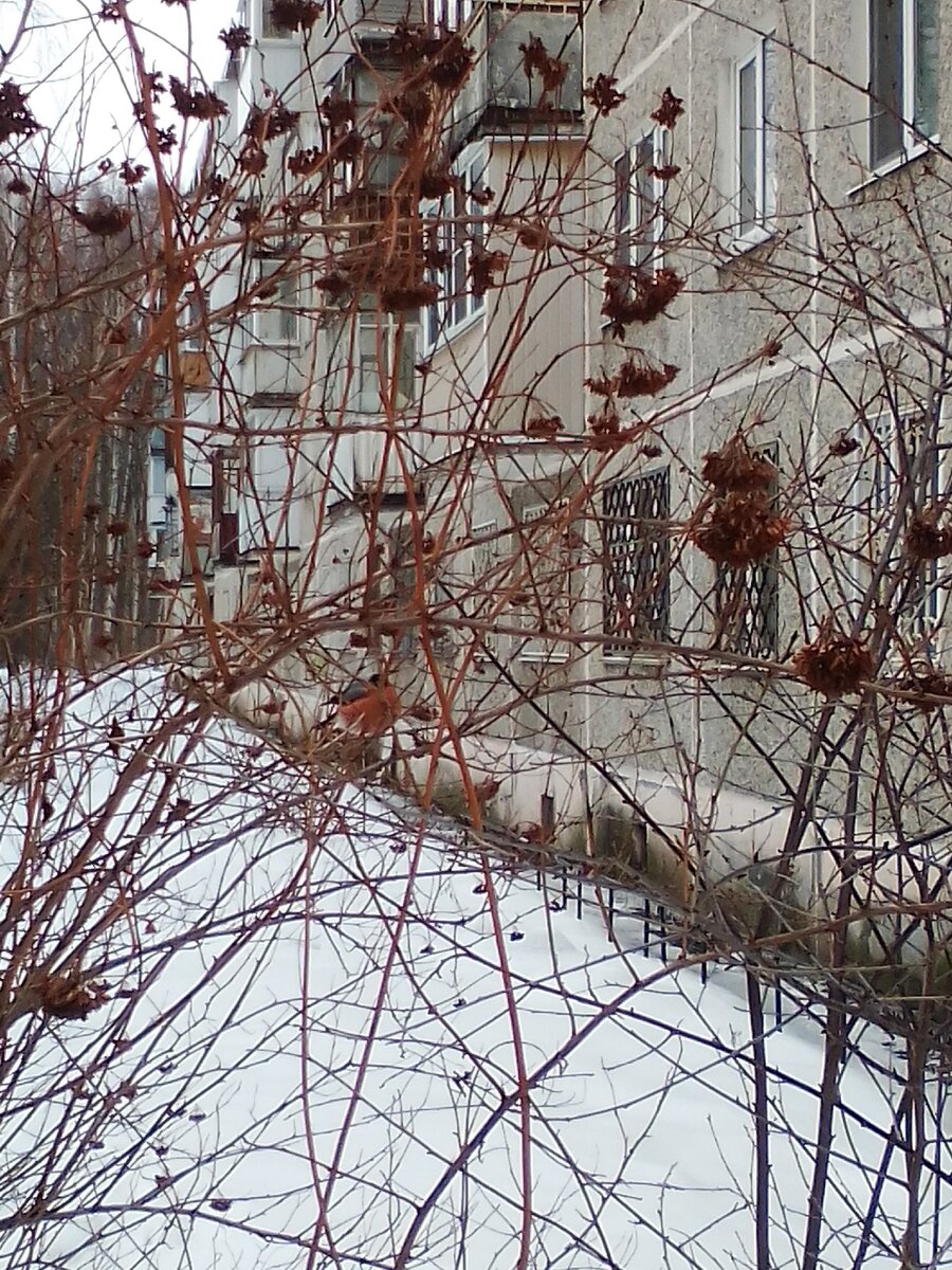 Вот и пришла пора позаботиться о пернатых - мы, например, возле дома обновили кормушку, сделанную из старой бутылки (признаемся, что год не подходили к ней). Закупились пшеном и нежареными семечками, засыпали - и уже прилетели первые гости (всё больше воробьи). Каких только кормушек у нас в городе не увидишь. Одна знакомая, например, приобрела себе прозрачную, на липучках, и прикрепила к пластиковому окну, так что из комнаты стало видно, что происходит в птичьем домике и кто туда прилетает. Идея прикольная, но мы такую покупать не будем, щадя нервы кота, который не выходит на улицу. А вот снегири куда-то исчезли. Вот такого красавца удалось сфотографировать Устинье прошлой зимой, уже на ее исходе, сразу и не разглядишь его: Сегодня мы предлагаем читателям полюбоваться птицами, зимующими рядом с человеком, на картинах. А вообще - позаботиться о тех, кому тяжело выжить и прокормиться в холода.
