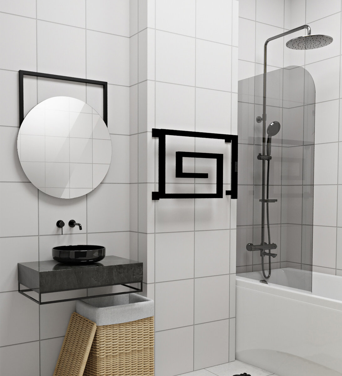 Для создания гармоничного интерьера в ванной комнате необходимо сочетать детали. Хороший вариант – сочетание сантехники и полотенцесушителя по цвету. В наше время сантехника уже выпускается в любых оттенках, это же касается и полотенцесушителей, поэтому сочетать их довольно удобно. Душевые лейки, смесители, раковины, ванная будут отлично сочетаться с полотенцесушителями любой формы, но аналогичного цвета. Например, смеситель для раковины OSGARD SOLEN WHITE отлично будет сочетаться с полотенцесушителем Oktava Slim 5 в таком же оттенке. А, например, смеситель для ванны и душа OSGARD SOLEN BLACK будет хорошо перекликаться по цвету с полотенцесушителем Muza в цвете «Черный Муар». Оттенки легко можно миксовать, разбавлять и дополнять. В расставлении акцентов можно рискнуть, главное не превысить количество сочетаемых предметов, иначе есть риск «перенасытить» интерьер и тогда акцентные детали потеряются в общей массе. Например, можно выбрать в оттенке «Черный Муар» полотенцесушитель, смеси