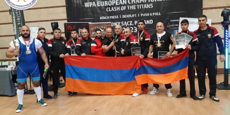 Сборная Армении заняла второе место в командном зачете чемпионата Европы по пауэрлифтингу (силовому троеборью) по версии WPA, сообщило министерство образования, науки, культуры и спорта Армении. «В соревновании более 300 спортсменов из 20 стран сборная Армении по пауэрлифтингу заняла второе место в общекомандном зачете, уступив только сборной Польши», – говорится в сообщении. Артём Галстян стал чемпионом Европы среди юниоров в весовой категории 48 кг и установил рекорд с результатом 115 кг. Алик Хачатрян стал двукратным чемпионом Европы в весовой категории 60 кг, заняв также третье место в абсолютном зачете юношей до 19 лет. Другой представитель Армении Артур Варданян весом 74 кг удостоился звания двукратного вице-чемпиона Европы, а Артак Аветисян был объявлен двукратным чемпионом Европы в весовой категории до 90 кг. Ваге Апицарян завоевал титул чемпиона в весовой категории до 100 кг, отметил Минспорт. «Сейран Абрамян завоевал титул чемпиона Европы в весовой категории 56 кг среди взрос
