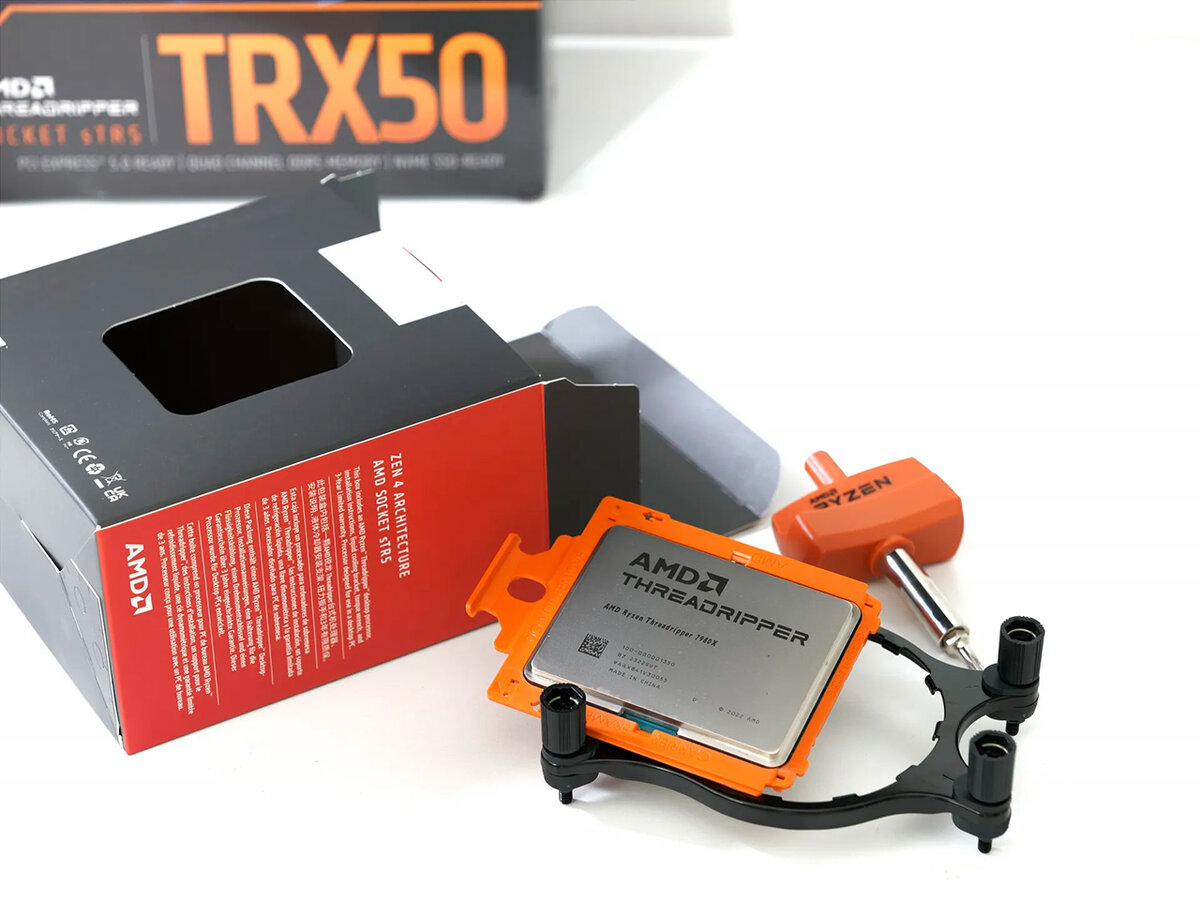 Вчера вечером спало эмбарго на публикацию обзоров процессоров Ryzen Threadripper 7000 – первых Threadripper, базирующихся на архитектуре Zen 4. Они и соответствующие платы на чипсетах TRX50 и WRX90 поступают в продажу с сегодняшнего дня, а в этой новостной заметке покажем, но что способна новая HEDT-платформа AMD. AMD разделила линейку Threadripper 7000 на 2 ветви. В серию «обычных» Threadripper 7000 вошли модели с 24-64 ядрами, 4-канальным контроллером памяти и 48 линиями PCI-E 5.0. Pro-версии насчитывают 12-96 ядер, получили 8-канальный контроллер памяти и 128 линий. Последние пока не продаются, так что довольствуемся только результатами 64- и 32-ядерных моделей. В приложениях и бенчмарках, способных задействовать весь арсенал ядер, новинкам AMD просто нет равных. Это неудивительно, ведь на данный момент у Intel нет чипов с хотя бы близким количеством ядер. В довесок у AMD серьёзное преимущество по производительности на ядро: так 56-ядерный Xeon W9-3495Х не радикально быстрее, чем Th