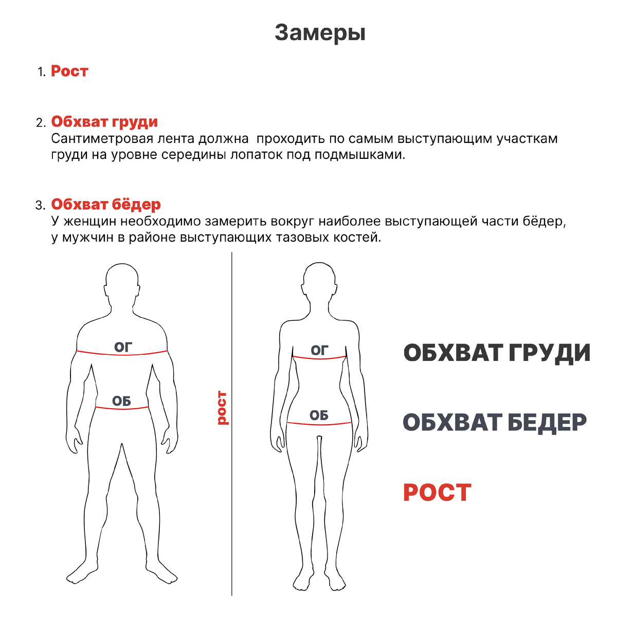 Очень важно чтобы рабочая одежда была удобной, поэтому сегодня расскажем как правильно снимать мерки для определения размера рабочей одежды. —Для проведения точных обмеров вам понадобится сантиметровая лента —Любые обмеры производятся поверх легкой одежды —Человек должен стоять в естественной для него позе —Произвести мерки размера мужской и женской спецодежды необходимо без обуви Рост Важное правило: все мерки при определении размера спецодежды должны сниматься без обуви. Обхват груди Сантиметровая лента должна проходить по самым выступающим участкам груди на уровне середины лопаток под подмышками. Обхват бёдер У девушек необходимо замерить вокруг наиболее выступающей части бедер, у мужчин в районе тазовых костей. Важное уточнение! Размеры повседневной одежды не всегда соответствуют размерам спецодежды по ГОСТу. Поэтому необходимо произвести замеры по указанным ниже правилам. Если эта статья была полезна, поставьте лайк или оставьте комментарий! Нам будет очень приятно. Спасибо!