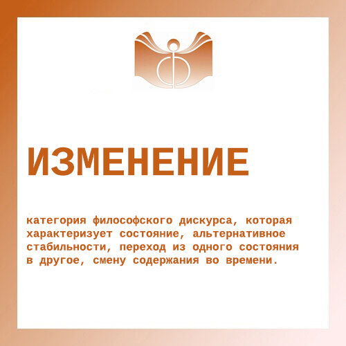 категория философского дискурса, которая характеризует состояние, альтернативное стабильности, переход из одного состояния в другое, смену содержания во времени.