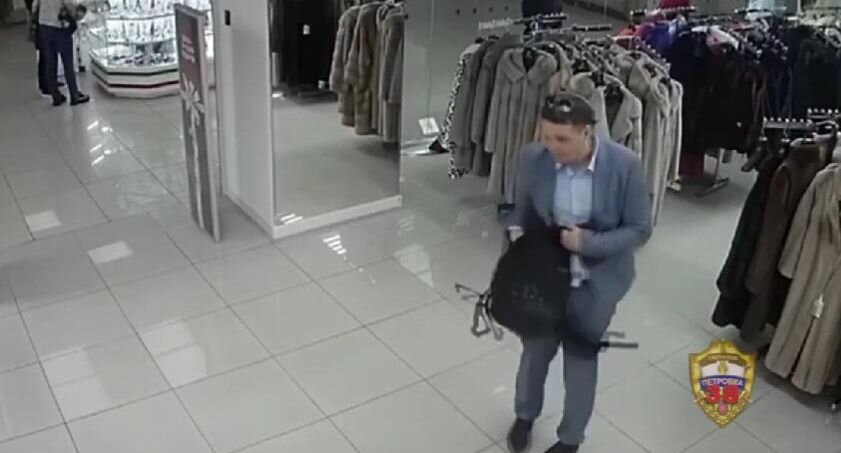 Ведомство опубликовало кадры, на которых видно, как мужчина снял меховое изделие с вешалки, спрятал его в рюкзак и скрылся.