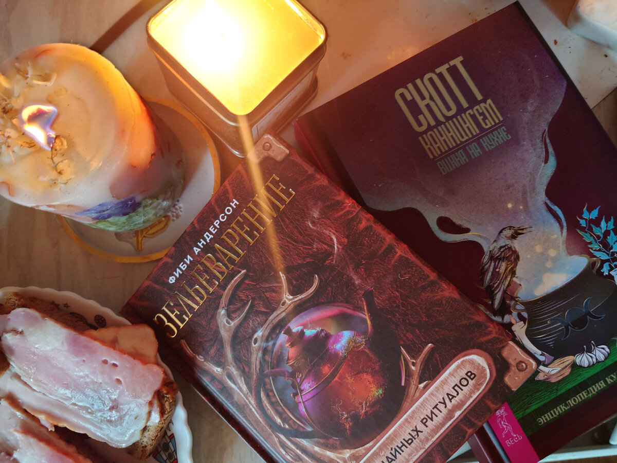 Приветствую всех в своем фейском гнезде! А я тут обзор на новые интересные книги принесла) Фан факт обо мне: готовить я ненавижу. Ну не родилась я для вдумчивого нарезания морковки, шинковки лука, посыпания всего это каким-то количеством приправ…Мой максимум- курица под сыром,а еще лучше- разлить готовую смесь для кекса и запечь. Ежедневная готовка вымораживает меня вообще. Так что, чтобы хоть как-то себя стимулировать на кухонные подвиги ,я купила книгу по магической кулинарии. А вот чай я как раз люблю -поэтому отличным дополнением стало книга по таким же магическим чаям и напиткам) Первая книга по кулинарии – это Скотт Каннингем «Викка на кухне». Вообще это довольно известный автор книг по викканской магии с очень простыми ритуалами и рецептами, мне нравится) Так что книга в принципе обещала быть информативной. Большая часть книги состоит из действительной энциклопедических знаний по кухонной магии. Это разделы с свойствами обычных ингредиентов для еды- но в магическом ключе. Я ск