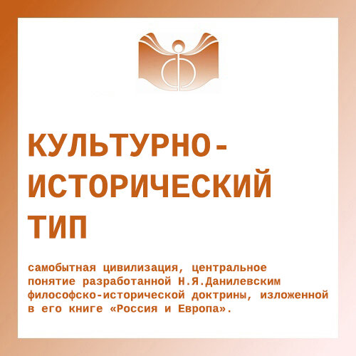 самобытная цивилизация, центральное понятие разработанной Н.Я.Данилевским философско-исторической доктрины, изложенной в его книге «Россия и Европа». В общем плане культурно-исторический тип состоит из идеальной формы (морфологического принципа) и органической материи. Идеальная форма определяет самобытные цивилизационные начала, воплощающиеся в сфере народности. Эти начала не могут передаваться от одного культурно-исторического типа к другому, т.е. в сущности культурно-исторические типы являются замкнутыми, самодостаточными образованиями. Возможно заимствование лишь тех начал, которые не относятся к сфере народности (техника, естествознание и др.). В последнем случае могут возникать преемственные культурно-исторические типы. В зависимости от степени развития разрядов (основ) культурной деятельности (религия, культура, политика, экономика) Данилевский выделял одно-, двух-, трех- и четырехосновные культурно-исторические типы. Эволюция, или историческая динамика культурно-исторического т