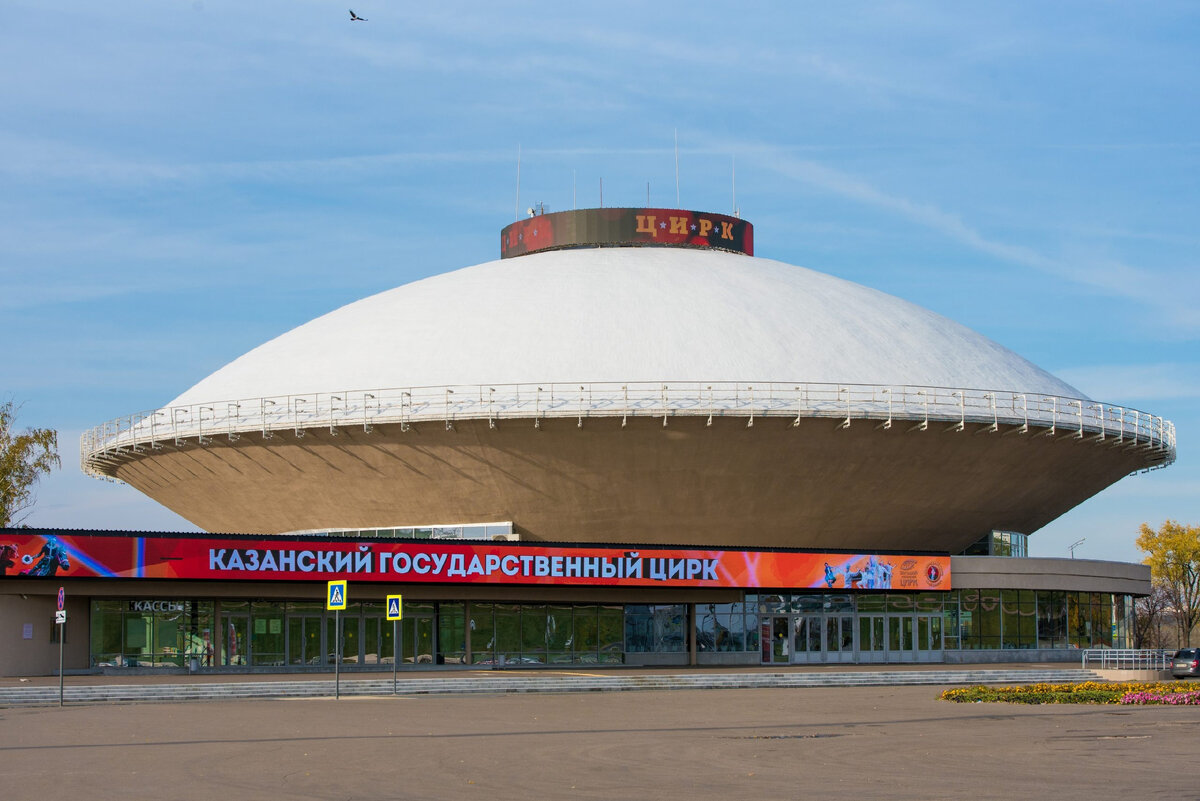 Казанский цирк — самое настоящее архитектурное чудо 20-ого века, которое стало не просто зданием, а самым гигантским бетонным куполом в мире на тот момент. Его диаметр составлял целых 62 метра, при этом он не имел ни одной внутренней опоры, а конус и купол были сооружены из предварительно напряженного бетона. История строительства этого удивительного сооружения имела свои сложности. За проект цирка взялась творческая мастерская Казани «Татгражданпроекта». Перед архитекторами была поставлена достаточно непростая задача: в цирке должно было быть не более 2000 зрительных мест и при этом, архитекторы должны были повторно использовать проект ярославского цирка, который был очень обычными и невзрачным. И тогда творческая мастерская решила сотворить невозможное. Для строительства этого здания они создали один из самых реалистичных и детальных макетов того времени. На нем были смоделированы ветровые и даже снеговые нагрузки. Чтобы макет проекта действительно получился реалистичным, специалист