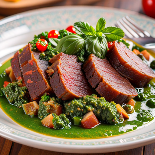 Привет, друзья! Сегодня я хочу поделиться с вами невероятно вкусным рецептом говядины в аргентинском соусе чимичурри. Этот соус, полный ароматических трав и специй, просто взорвет ваши вкусовые рецепторы! А говядина, пропитанная этим сочным соусом, просто тает во рту. Готовы окунуться в мир аргентинской кулинарии? Давайте начнем! **Ингредиенты:** - 800 г говядины (можно взять вырезку, рибай или любую другую сочную часть) - 1/2 стакана оливкового масла - 1/4 стакана красного винного уксуса - 4 зубчика чеснока, измельченных - Сок половины лимона - 1/4 стакана свежеизмельченной петрушки - 1/4 стакана свежего кинзы - 1 чайная ложка сушеного орегано - 1/2 чайной ложки красного перца - Соль и свежемолотый черный перец по вкусу **Инструкции:** 1. Приготовьте соус чимичурри, смешав в миске оливковое масло, красный винный уксус, измельченный чеснок, сок лимона, петрушку, кинзу, орегано, красный перец, соль и перец. Оставьте соус в стороне, чтобы он пропитался ароматами трав. 2. Разогрейте г