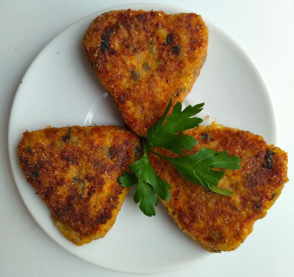 Ингредиенты: Рис – 0,5 стакана Овсяные хлопья – 0,5 стакан Творог – 400 грамм Листы нори – 2-3 шт. Мука амарантовая – 1-1,5 ст. ложки Луковица – 1 шт. (средних размеров) Чеснок – 1 зубчик Морковь – 1 шт. Картофель – 1 штука Специи – 1 ч. ложка (по вкусу) Соль – 1,5 – 2 ч. ложки (по вкусу) Мука гречневая – 50 гр. (для обваливания котлеток) Масло растительное – 50 мл (для жарки) Приготовление: Рис хорошо промыть (два, три раза), сварить до мягкости. Овсянку залить горячей водой и дать набухнуть (20-25 минут). Творог, лучше не жирный, выложить в миску и хорошо размять вилкой. Листья нории измельчить на мелкие кусочки (нарезать ножницами или разорвать руками), добавить в размятый творог и хорошо перемешать. Отварной рис, распаренную овсянку добавить к творогу. Лук, чеснок натереть на средней терке или перебить блендером в кашицу. Полученную кашицу добавляем к размятому творогу. Морковь и картофель помыть, очистить и натереть на средней тёрке, отжать сок. Натертые морковь, картофель, соль,