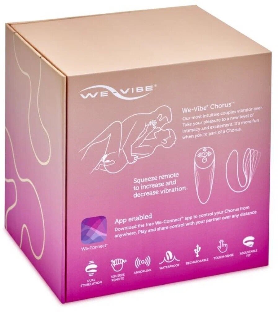 Это та самая игрушка с легким названием скобка! Chorus Основная идея создания данного девайса Канадской фирмы We-Vibe заключается в том что бы партнеры не отвлекались друг от друга! Благодаря ей не нужно исключать классическое занятие любовью! Один хвостик скобки вставляется внутрь, другой накрывает собой клиторальную зону. Вагинальная часть тонкая и идеально подстраивается под структуру девушки. Такое строение игрушки позволяет заниматься любовью и получать удовольствие от мягких проникающих вибраций. Партнер ощущает более узкий вход и мягкую вибрацию! А партнерша стимуляцию зоны «G», клиторальную стимуляцию и партнера одновременно Поподробнее о преимуществах: Анатомия каждого тела уникальна, но посадка массажёра Chorus легко регулируется и остается в неизменном положении во время любви. Это позволит чувствовать вибрации именно там, где необходимо. Сенсорное управление Chorus имеет уникальные сенсорные рецепторы, расположенные под логотипом We-Vibe. Во время интима от ваших движений и