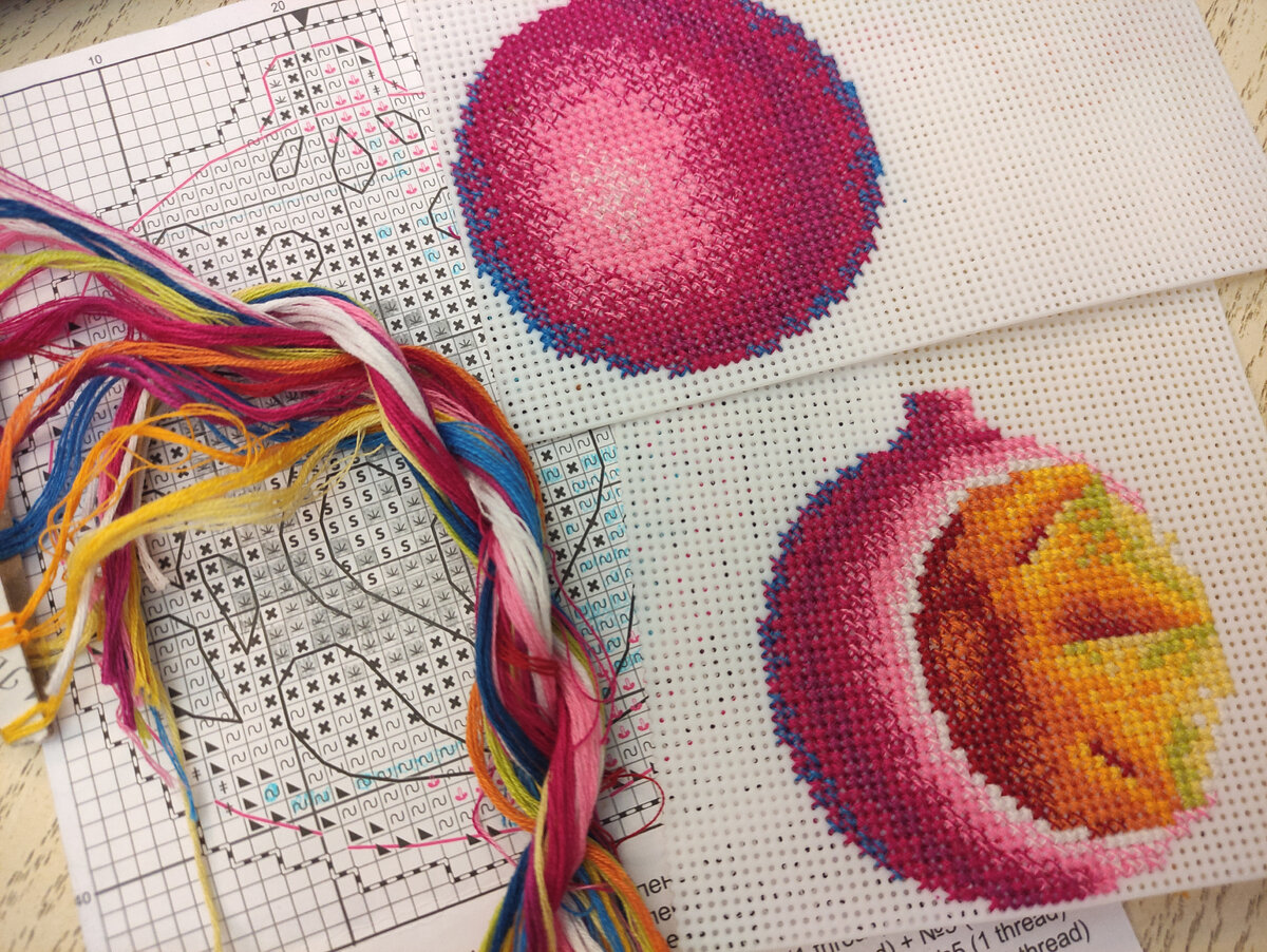 Просто поболтать. Разговор пойдёт про наше настроение и вышивку. Вышивание это не просто хобби и не только творчество. Вышивка приносит радость и удовольствие, успокаивает, останавливает негативные мысли, не даёт совершить спонтанные и необдуманные поступки. Когда есть сомнения в делах, вопрос "как лучше поступить" и "что делать" можно достать вышивку, сесть и начать думать. Вышивать большие наборы в таком случае сложно, но можно сосредоточится на миниатюре. Тут будет и цветотерапия, и нитко-умягчение и медитация. Сидишь, смотришь на ниточки, думаешь. В определённый момент времени мысли в голове игрушки начинают жить каждый по своему. Часть мозга управляет руками, а часть занята решением жизненных вопросов. Решать текущие вопросы за вышиванием можно. Я в такие моменты люблю взять что-то маленькое, с расчётом "вышью за неделю". Открываю набор, изучаю схему, посмотрю на ниточки, если есть бисер - вообще отлично! Говорят, что вышивать в плохом настроении нельзя. Весь нег