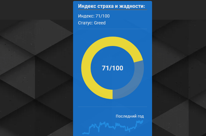 Индексом страха и жадности является цифра от 1 до 100, является торговым индикатором и отображает вероятность роста или падения крипто рынка в будущем. Если значение индекса низкое: от 1 до 25 - это означает, что биткоин и весь крипто рынок будет падать, так как люди испытывают сильный страх и продают свои активы. И наоборот, при высоком показателе индекса (75-100), трейдеры и инвесторы испытывают сильную жадность и ажиотаж, поэтому покупают криптовалюту. Основные значения индекса страха и жадности: Крипто рынок сильно зависит от эмоций людей, когда пользователи боятся, видят плохие новости и падение курсов криптовалют - они предпочитают продавать свои активы, следуя сиюминутному импульсу и наоборот, когда курсы растут - трейдеры боятся упустить выгоду и подчиняясь синдрому упущенной выгоды (FOMO) покупают криптовалюту. Как считается индекс страха и жадности: От чего зависит Fear and Greed index (Индекс страха и жадности): Можно ли использовать индекс страха и жадности для торговли? Н