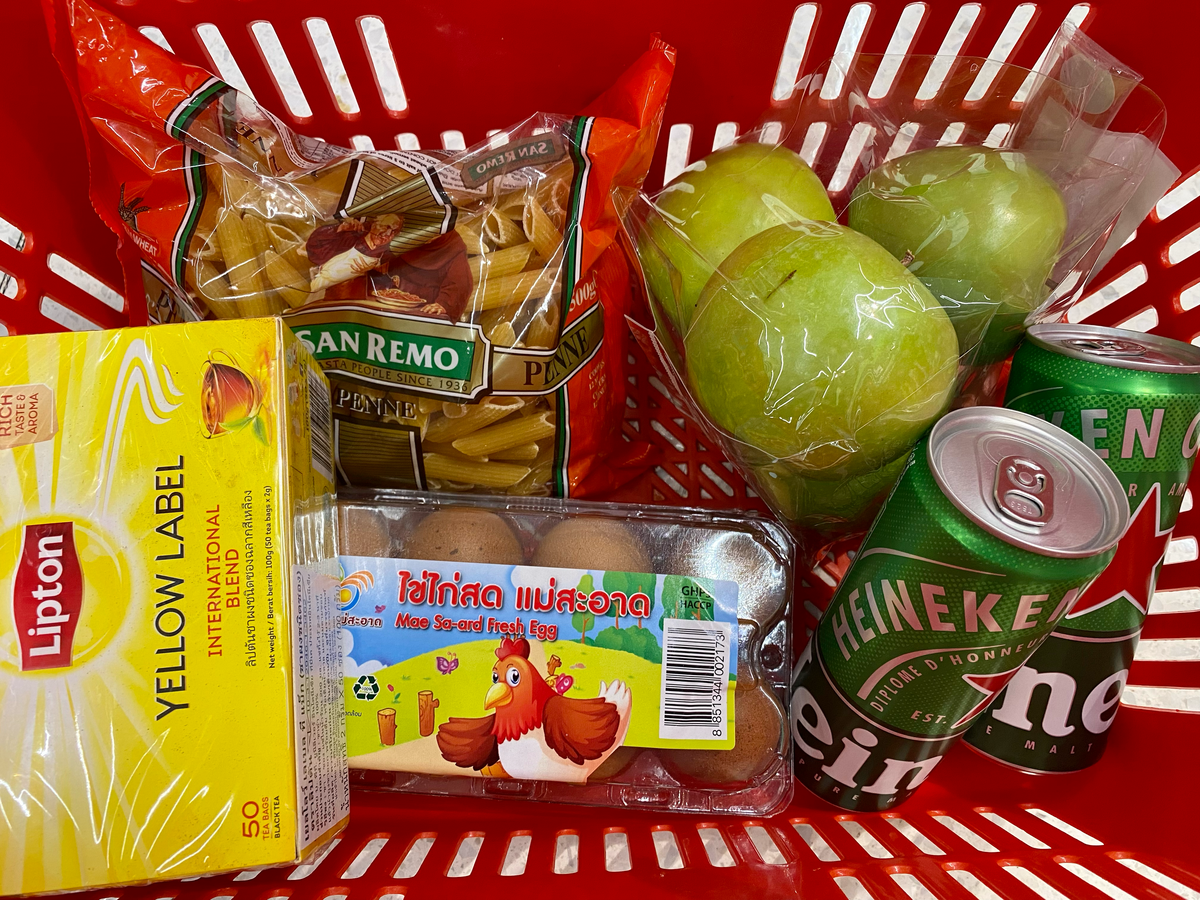 Всем привет! В этой статье покажу продукты из супермаркета БигС в Бангкоке, которые стоят явно дороже, чем в обычном магазине у дома в России. Мы живем не в туристическом районе, тут много локальных кафе и магазинов в которые ходят местные. В большом супермаркете БигС цены ниже, чем в 7/11, и можно рассчитаться картой за любую покупку, в этом его удобство. Я покупаю тут хозтовары, хлеб, печенье, мясо, креветки и рыбу, консервы, макароны и лапшу быстрого приготовления, чай и сладкое к нему. А вот готовую еду и свежие фрукты, я предпочитаю покупать на рынках. Во-первых, если места знать, то можно купить дешевле, во-вторых, фрукты на рынках намного вкуснее. Про готовую еду можно сказать то же самое, на рынках она вкусная, большой ассортимент и можно тут же ее съесть горяченькую. Но единственное, на уличных рынках еды ее продают на свежем воздухе, и мухи могут бегать по ней и пыль с дороги лететь. Но когда живешь в Азии, на это не обращаешь внимание (наверное). Хлеб из пшеничной муки с кор