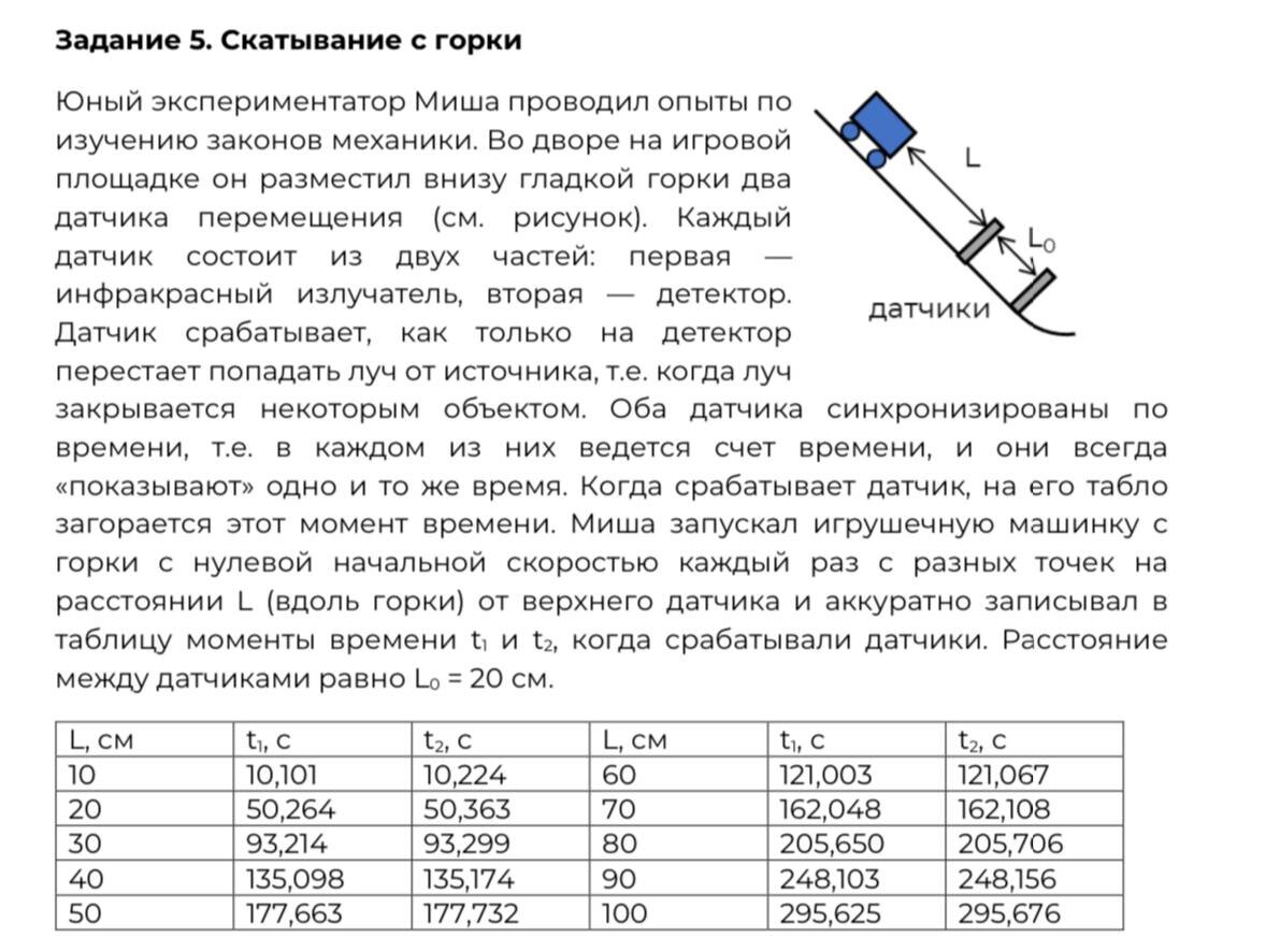 Задание 1. Кукурузное поле 2 Заяц и Волк находятся в непроглядном кукурузном поле в точках А и В соответственно. Расстояние между точками L = 15 км. Заяц и Волк начинают одновременно бежать со скоростями v, = 4 м/с и v2 = 3 м/с соответственно. Направление движения Зайца составляет угол а = 45 к отрезку АВ, Волка угол В = 30° к отрезку АВ. Волк может учуять Зайца, если тот находится не дальше R = 3 км от Волка. Сможет ли Волк уловить запах Зайца в процессе движения? Считайте, что Волк и Заяц двигаются по одну сторону от прямой AB (см. рисунок) ПОЛНЫЕ ОТВЕТЫ УЖЕ ТУТ (НАЖМИ) Задание 2. Сосуд с трубкой Школьник Дима помогал разбирать старое оборудование B химической школьной лаборатории и обнаружил стеклянный прибор, состоящий из шарообразного сосуда объемом Vo = 10 л, к которому присоединена U-образная трубка круглого сечения диаметром d = 2 см (см. рисунок). Дима наполнил U-образную трубку водой до краев и подсоединил ее к сосуду, в котором находится воздух при комнатной температуре То =