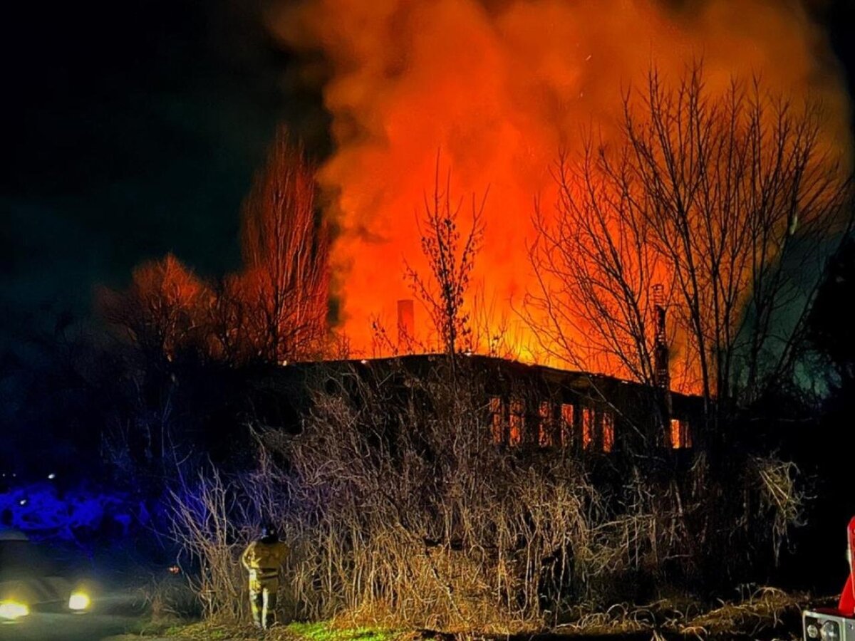 В Шахтах 3 декабря произошел крупный пожар в заброшенном двухэтажном здании. Происшествие случилось на улице Папанина, 8.
