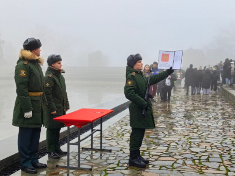Накануне на Мамаевом Кургане новобранцы гвардейского мотострелкового соединения приняли военную присягу. Как рассказали Волжский.ру в пресс-службе Южного военного округа, в торжественном ритуале приняли участие молодые люди, призванные осенью из Краснодарского края, Ростовской области, Калмыкии, Астрахани, Дагестана. Церемония началась с выноса Государственного флага РФ. С напутственным словом к присутствующим обратились командиры, представители местной администрации и городского комитета солдатских матерей. Затем новобранцы присягнули на верность Родине и поклялись достойно исполнять свой воинский долг.