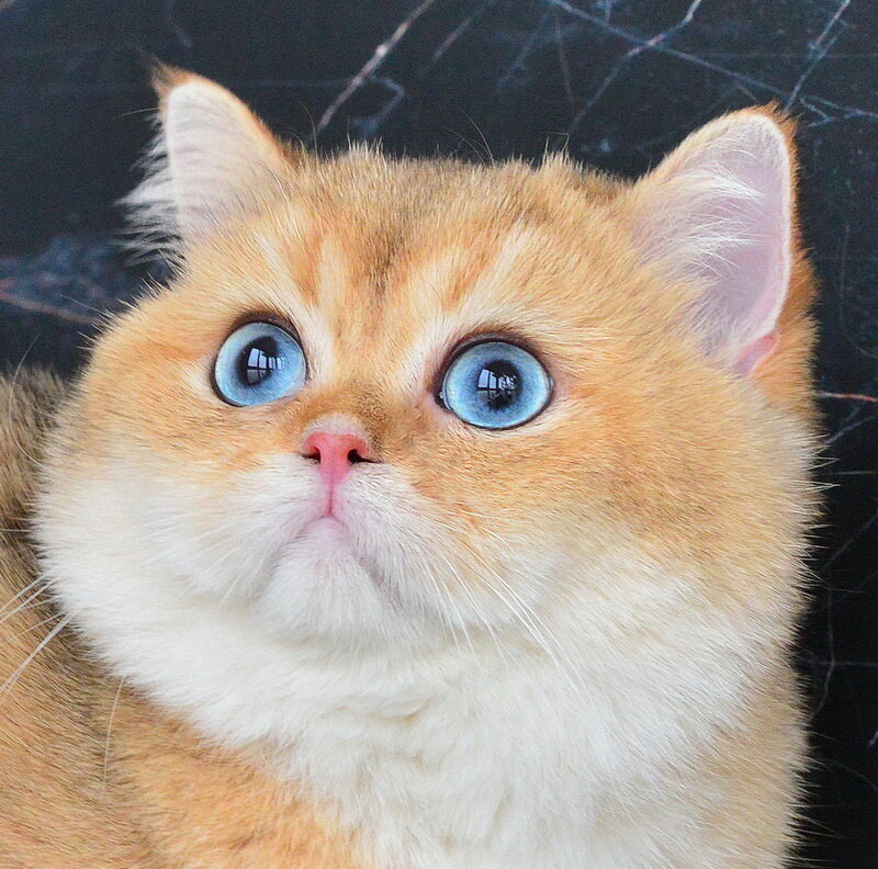Голубые глаза в сочетании с золотым окрасом (как на фото выше) стали возможны благодаря появлению доминантного гена голубых глаз (сокращенно ДГГ). До этого голубые глаза встречались только у кошек окраса колор-пойнт (термозависимый "сиамский" окрас) либо у белых или с большим количеством белого.