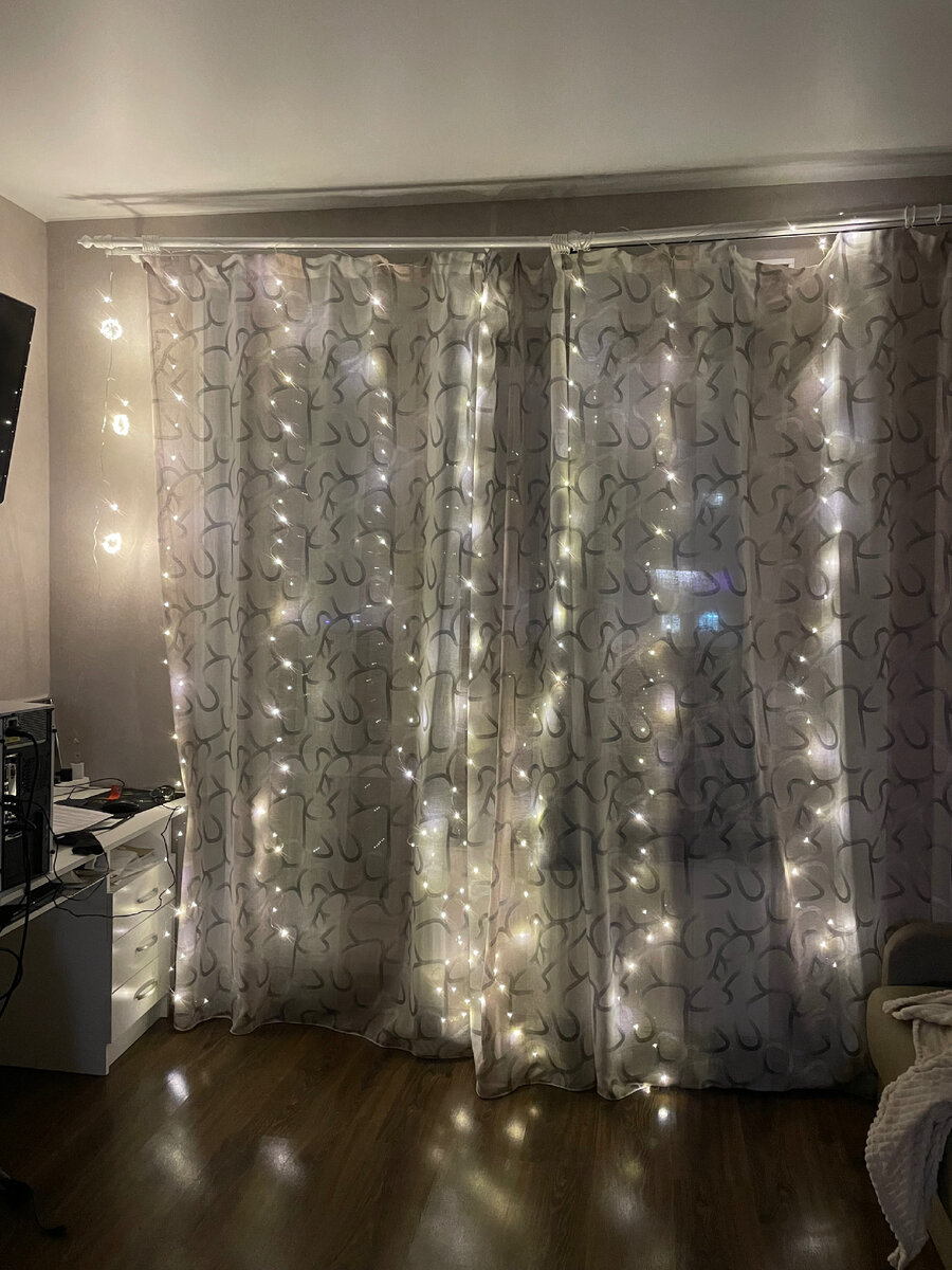 Захотелось новогоднего настроения в доме поэтому было решено поехать в магазин. В Светофоре мне давно приглядывалась гирлянда-штора. Стоила она где -то 527 рублей. Не долго думая мы её взяли. К тому же сотрудники магазина сразу же на кассе эту гирлянду проверили. И когда загорелись эти теплые огоньки, я сразу поняла, что новогоднему настроению точно быть✨ Плюс маленький бонус, что в комплекте шел маленький пульт, что очень удобно. Теперь в доме царит атмосфера волшебства и уюта ✨❤️