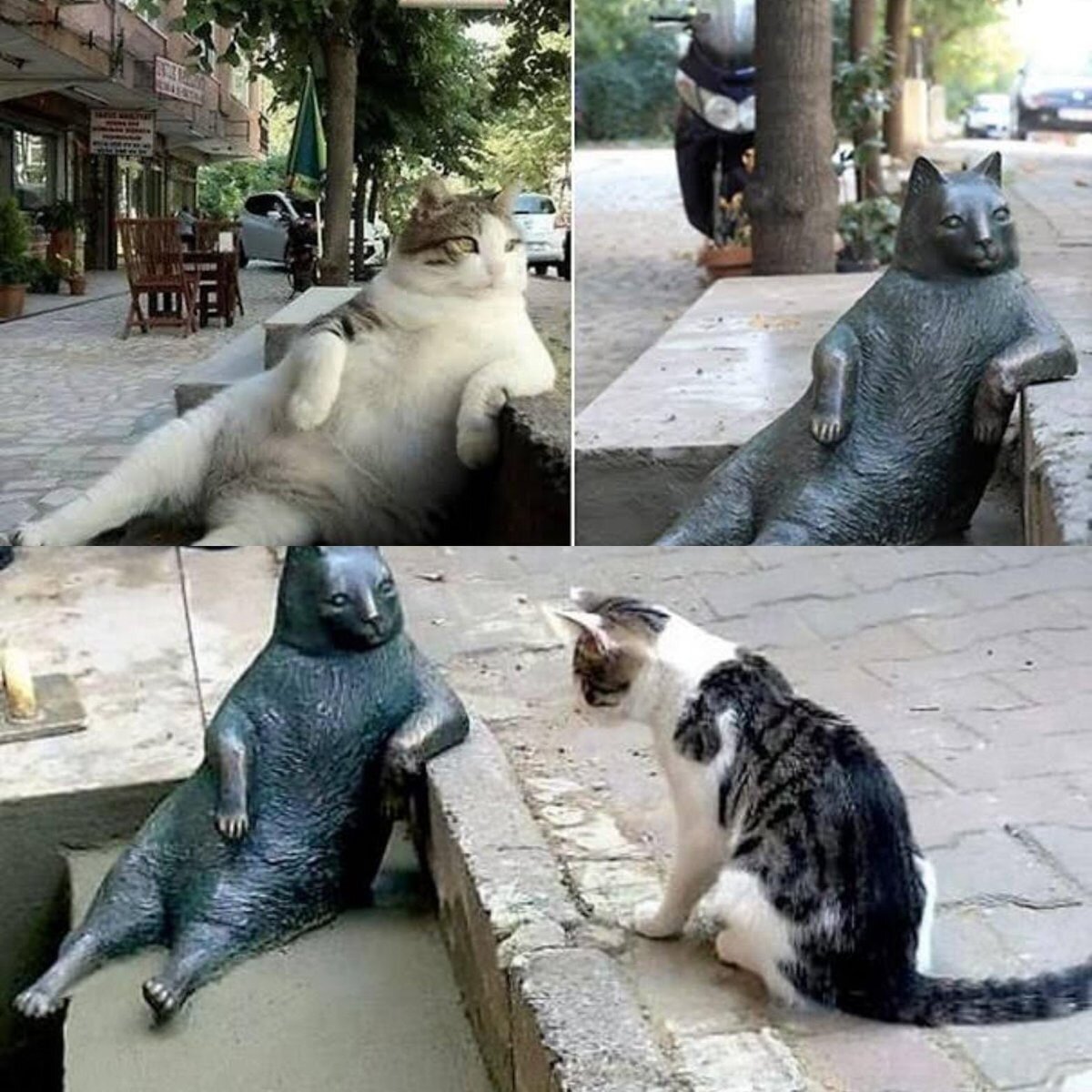 В Стамбуле жил уличный кот Томбили, известный своей позой, в которой сидел целыми днями. На том самом месте сейчас стоит памятник этому коту.
