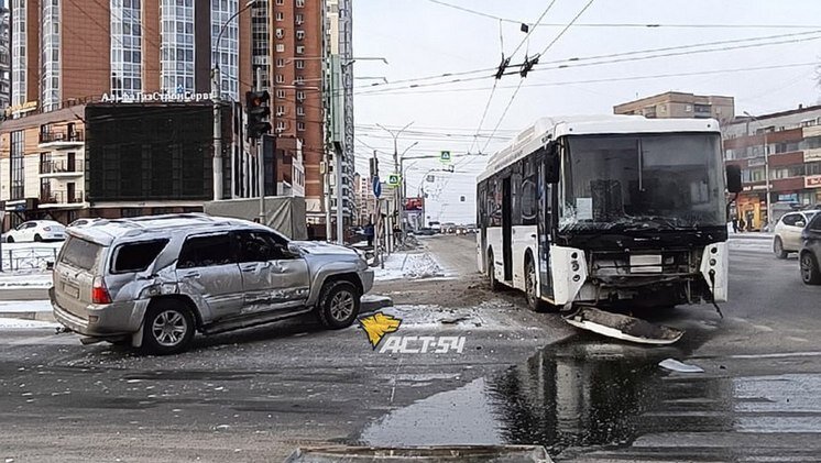 В Новосибирске пассажирский автобус № 96 снес кроссовер на перекрестке