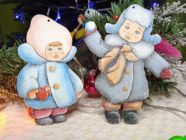 Расписанные вручную елочные новогодние украшения очень нравятся нашим знакомым и друзьям. А вот с этой миленькой парочкой на фото вверху я расстаться так и не смогла - оставила для своей ёлки.