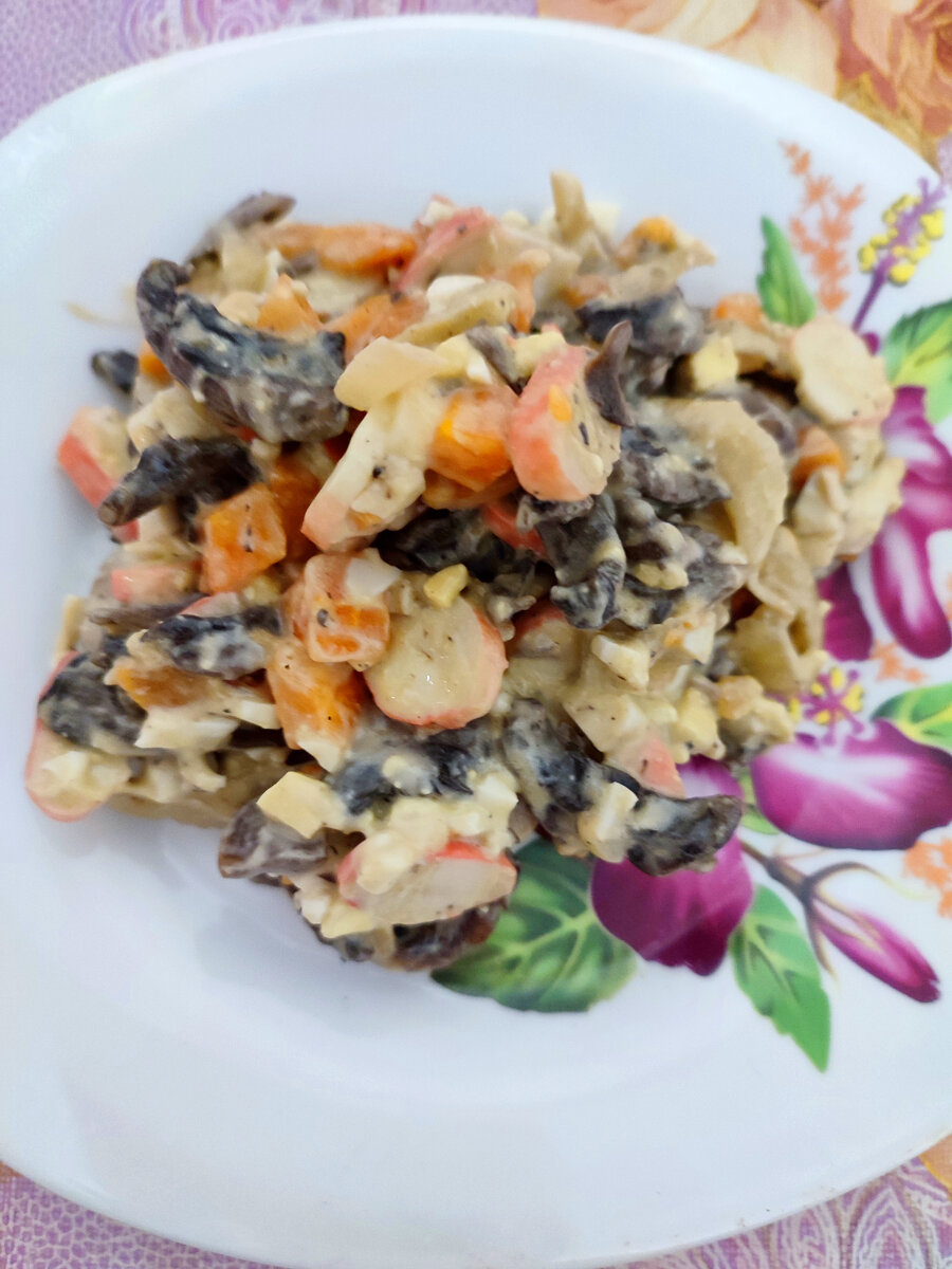 Вкусный и простой салат с грибами и крабовыми палочками
