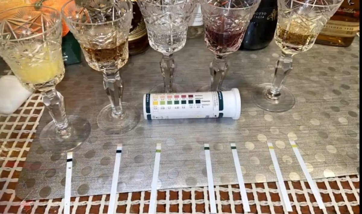 Как то я задумался о более практическом методе определения наличия сахара в алкогольных напитках нежели на этикетках и как не " вылететь" из состояния кетоза после употребления последних. Поскольку алкоголь и моча в принципе одно и тоже в качестве индикатора я взял полоски для определения сахара и кетовых тел в моче человека. В нашем случае это полоски "кетоглюк" ( в свободной продаже). Образцы (слева направо ):сок, коньяк,водка,сухое красное вино (импорт),виски (импорт). В случа с соком понятно, желтый индикатор мгновенно позеленел, что свидетельствует о лютом наличии глюкозы и ее производных. Коньяк и вино так же где-то рядом с соком. Водка так же показала наличие глюкозы в ее составе, а вот импортный виски показал достойные результаты. Кому интересно , какие результаты у импортной водки и вообще в принципе этот эксперимент, можно посмотреть видео: кето и алкоголь.