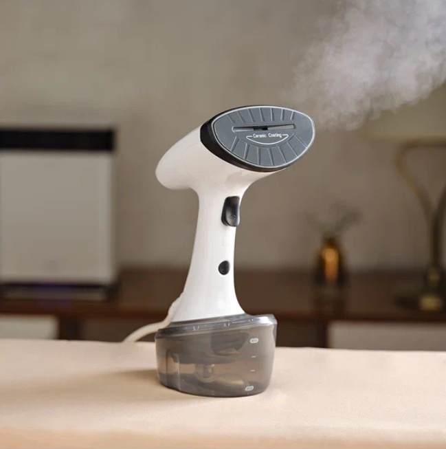 Отпариватель T-HGS01 - не первый отпариватель в моих руках. Был у меня еще старенький дельта. Но он был слабее, судя по характеристикам, в 2 раза, а еще он не имел горизонтального отпаривания, а мне очень не хватало этой функции. А тут еще и цена на Timberk на ВБ упала. Я решила, что это знак. Ну и, в общем, всего за 3100 рубликов сие чудо техники прибыло ко мне. Пришел в полной комплектации, все целое, доки в наличии, все в норме. Размер прибора- 262x114x155. Он примерно такого же размера, как Дельта, но совершенно другой формы. В отзывах писали, что вот такая вот форма удобнее, чем форма кувшина Дельты и я готова подтвердить эти отзывы. Во- первых, рука меньше устает, во- вторых, ничего не проливается, в третьих, и пользоваться удобнее, и в руке как-то приятнее сидит. Вес отпаривателя, кстати, всего 1 кг. С водой, конечно, потяжелее становится. Но, в любом случае, рука не устает отпаривать. Резервуар для воды, к слову, - 320 мл, это довольно много. Его хватает на стопочку вещей. Вн