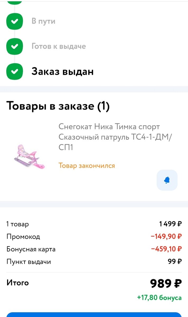 Снегокат Ника Тимка спорт Сказочный патруль ТС4-1-ДМ/СП1 я купила впервые. У сыновей были разные ватрушки, сноуботы, санки. А вот снегоката не было. В прошлом году, в конце зимы, Детский мир распродавал товары для зимнего спорта и отдыха с хорошей скидкой. С промокодом и баллами он обошелся мне в 989 руб. Я подумала. Почему бы и нет? Купила. Выбор стоял между ватрушкой за эту же цену. Она была для маленьких детей, как бы с сиденьем, с небольшим углублением для ног. Красочная. У нас уже есть ватрушка, но она огромная и уже достаточно поюзанная. Но выбор все-таки сделала в пользу снегоката. Муж собрал его, чтобы осмотреть, нет ли брака. И убрал на балкон. В эту зиму достали и уже катаемся на нем. Он суперский! Легкий. Яркий. По снегу бежит впереди тебя. Ночью выпало много снега. Мы гуляем на стадионе школы. Дорожки еще никто не успел протоптать. Я думала, сейчас как встряну. Но нет. Снегокат быстро ехал. Веса ребенка я почти на нем не ощущаю. Очень удобный буксировочный трос с а