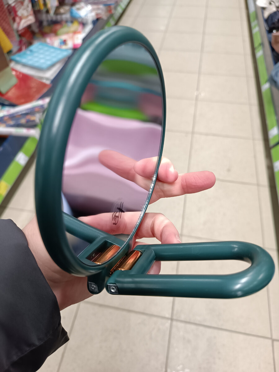 Приветствую, уважаемые! Что сказать? Фикс Прайс нас балует... я не буду показывать вам товары сомнительного качества. Только то, к чему стоит присмотреться. Поэтому досмотрите до конца, возможно что-то для себя стоящее подберете. В прошлый раз показывала эти раскладные зеркала, ручка выпрямляется, двусторонее зеркало, с одной обычное, а с другой увеличительное в 5-кратном размере. Просто сейчас новая партия в зеленом и черном цвете поступили. Чернй показывала, были уже, а вот зеленые оченьс симпатично смотрятся. 🔥 А вт они на полке с ценниками, похожие в двух размерах: На зиму, когда морозы, я вниз сначала надеваю всегда хлопковые колготки, чтоб дышала кожа. А потом уже лосины для удерживания тепла и брючки. В Фикс Прайсе есть хлопковые колготки, в этом году их ни разу не показывала, хотя периодически привозят. От бренда Зувей. Я их покупала, но не посмотрев внимательно... Дело в том, что у них сзади двойные швы у всех размеров. Вот, это мне не понравилось. Но если кому на это все ра
