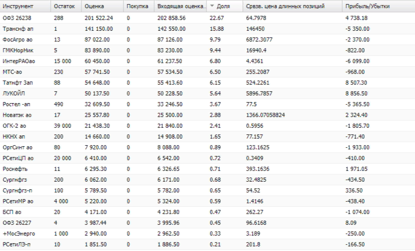 На счете сейчас 888 000 рублей. Меньше, чем было на прошлой неделе. Происходит небольшая коррекция портфеля.