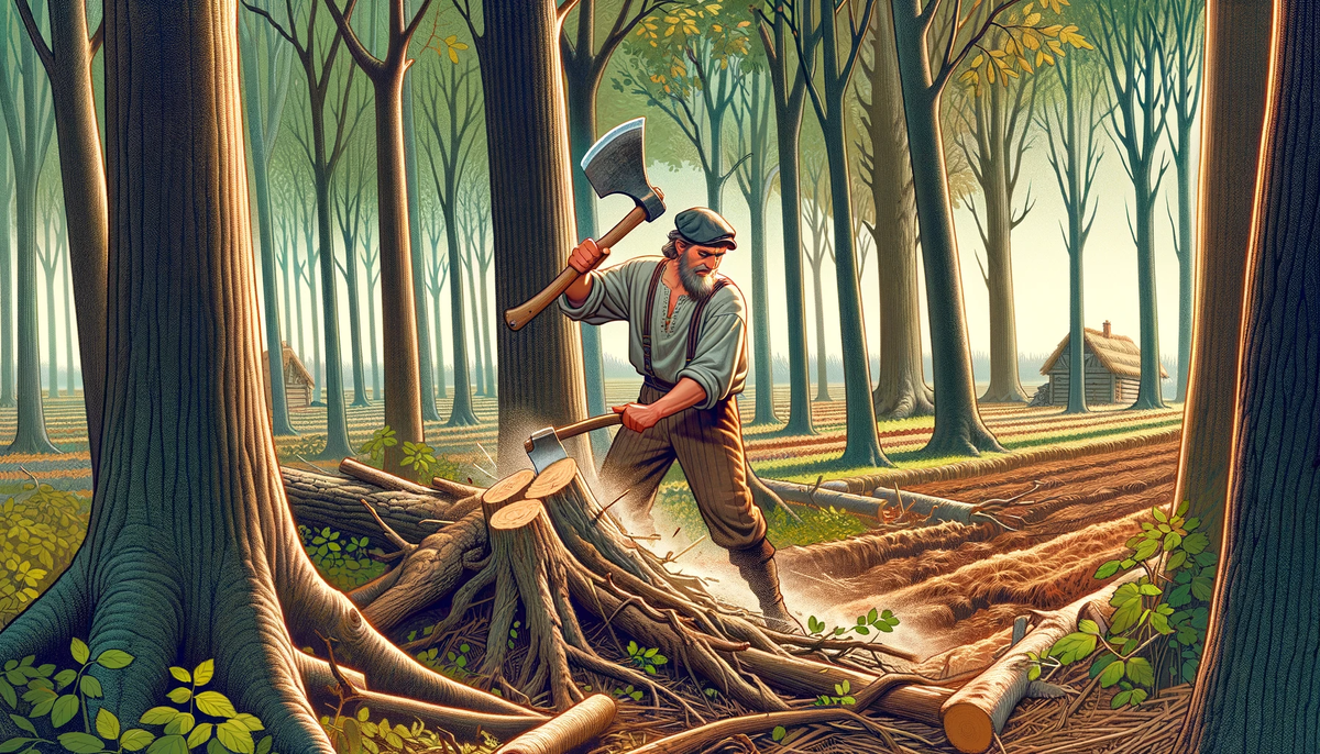 "I'm clearing the forest for a field. I worked hard, tirelessly, but only cleared a small space. You can't make a living from such a field. And I still need to remove the logs and stumps, another tough job."